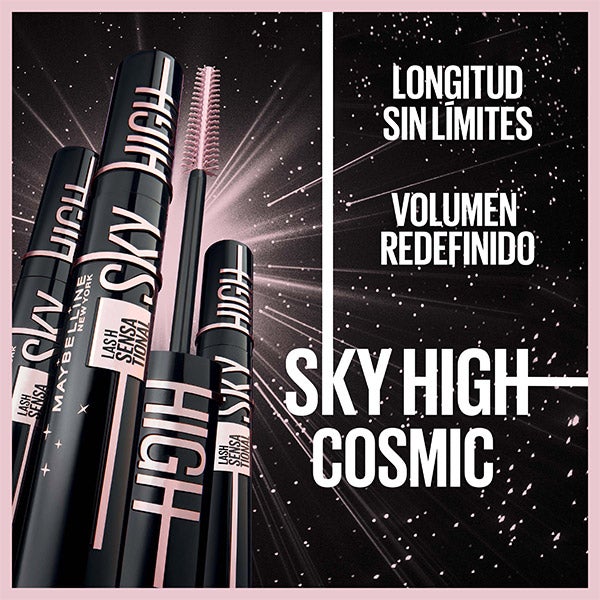 Máscara de cílios Lash Sensational Sky High Cosmic para um comprimento sem limites + volume redefinido nos seus cílios.