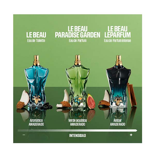 Colorido com criaturas e flores exóticas, o flamante jardim de Gaultier se inspira no desfile de moda outono-inverno 2010-2011 para criar um tentador Éden de esplendor e prazeres proibidos. Neste exuberante paraíso, La Belle Paradise Garden e Le Beau Paradise Garden compartilham uma paixão que consome tudo. Adornado com um deslumbrante colar de plantas, colorido com detalhes de alta costura, seu frasco nu azul-laguna encanta os sentidos com uma indomável sensualidade natural. Deixe-se seduzir por este néctar afrodisíaco com notas florais e abaunilhadas.