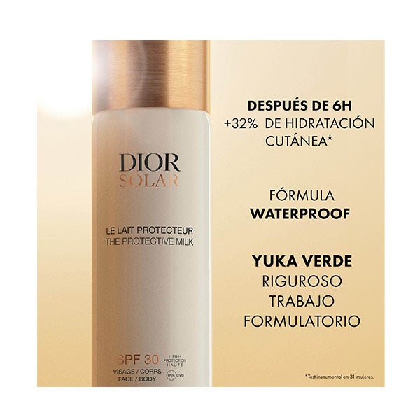 Leve e refrescante, a textura láctea de Dior Solar Leite Protetor para Rosto e Corpo SPF 30 revela uma agradável sensação sobre a pele sem deixar acabamento oleoso. Seu prático formato em bruma permite uma distribuição uniforme do leite sobre a pele.