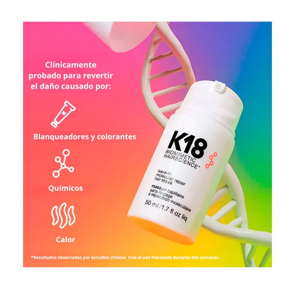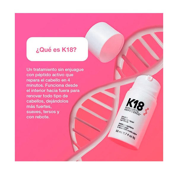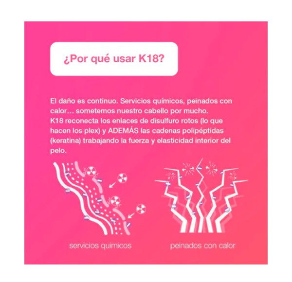 - Funciona em todos os tipos de cabelo : Devido a que K18 HairScience™ funciona a nível molecular, este produto é eficaz em todos os tipos de cabelo.
