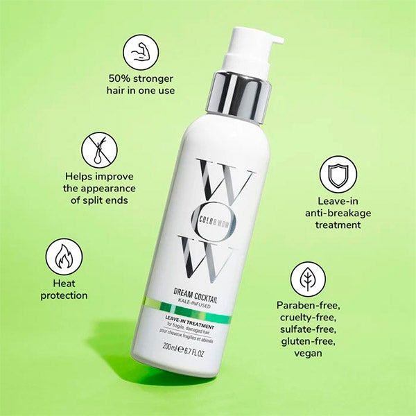 Tratamento sem enxágue com infusão de couve. Clinicamente comprovado para tornar o cabelo 50% mais forte com uma única secagem, reduz a quebra e é protetor térmico.