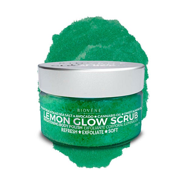 Esfoliante corporal de limão que restaura o brilho com sal do mar morto e ingredientes estrela abacate e óleo de cannabis, óleo de amêndoas doces esfolia, refresca, tonifica e hidrata sua pele para restaurar a suavidade e o brilho.