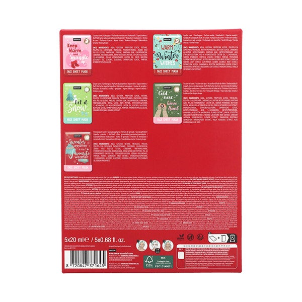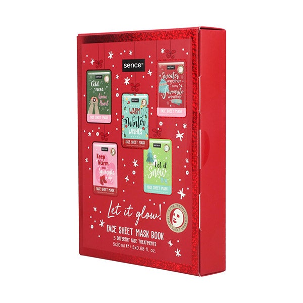 Mas não se preocupe, o livro de máscaras Sence Warm Wishes está aqui para dar ao seu rosto um impulso de hidratação. Inclui cinco máscaras alegres que transformarão seu rosto seco em um radiante antes mesmo de você poder dizer "bastão de doce".