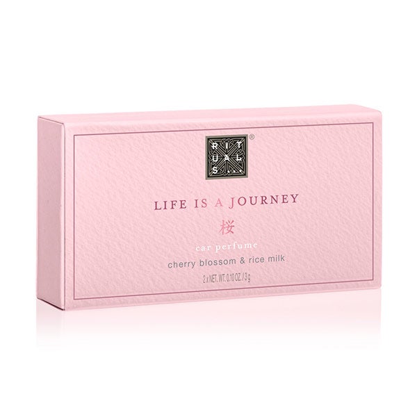 A vida é uma viagem, aproveite o caminho com este ambientador para o carro com o aroma renovador da flor de cerejeira e leite de arroz.