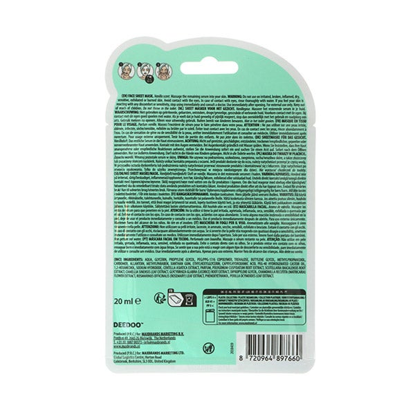 Vamos nos divertir um pouco com máscaras. Esta alegre máscara facial Deedoo estampada te faz parecer super fofa como um sorvete, enquanto transforma seu rosto em uma pele fresca e brilhante. Perfeito para jovens que querem cuidar de si mesmos enquanto se divertem.