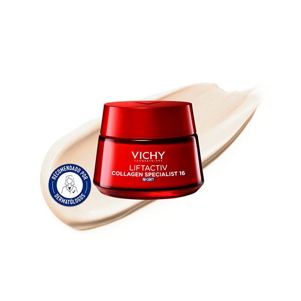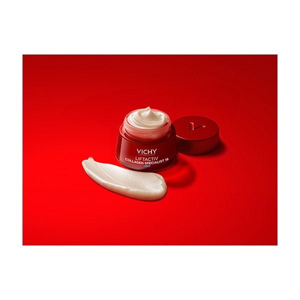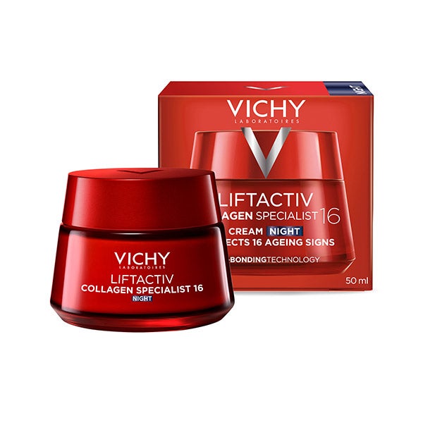 Reviva a pele cansada com VICHY LiftActiv Collagen Noite, impulsionada por uma mistura inovadora de ingredientes, o creme está repleto de poder antienvelhecimento.
