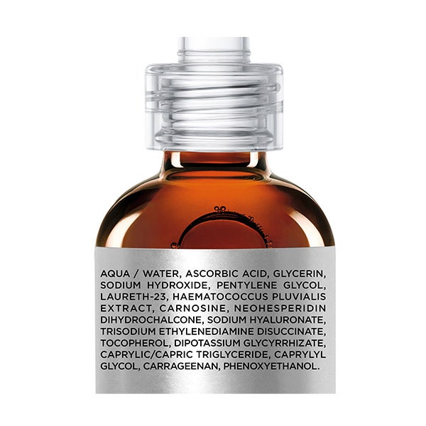 AQUA / WATER ● ASCORBIC ACID ● GLYCERIN ● SODIUM HYDROXIDE ● PENTYLENE GLYCOL ● LAURETH-23 ● HAEMATOCOCCUS PLUVIALIS EXTRACT ● CARNOSINE ● NEOHESPERIDIN DIHYDROCHALCONE ● SODIUM HYALURONATE ● TRISODIUM ETHYLENEDIAMINE DISUCCINATE ● TOCOPHEROL ● DIPOTASSIUM GLYCYRRHIZATE ● CAPRYLIC/CAPRIC TRIGLYCERIDE ● CAPRYLYL GLYCOL ● CARRAGEENAN ● PHENOXYETHANOL.