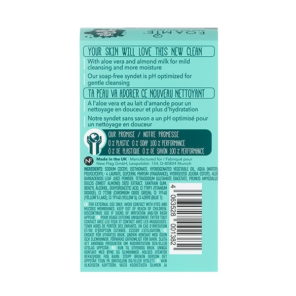 Sodium Cocoyl Isethionate, Hydrogenated Vegetable Oil, Aqua (Water), Polyglyceryl- 4 Laurate, Glycerin, Parfum (Fragrance), Hydrolyzed Jojoba Esters, Aloe Barbadensis Leaf Juice Powder, Tetrasodium Glutamate Diacetate, Prunus Amygdalus Dulcis (Sweet Almond) Seed Extract , Xanthan Gum, Benzyl Alcohol, Dehydroacetic Acid, CI 77891 (Titanium Dioxide), CI 77288 (Chromium Oxide Green), CI 19140 (Yellow 5 lake), CI 19140 (Yellow 5), CI 42090 (Blue 1)