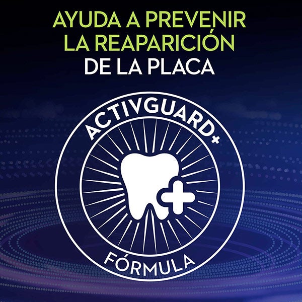 Sua fórmula exclusiva ActivGuard proporciona uma redução da placa bacteriana duas vezes maior que o creme dental com flúor normal e ajuda a aumentar a resistência contra futuros problemas nas gengivas.