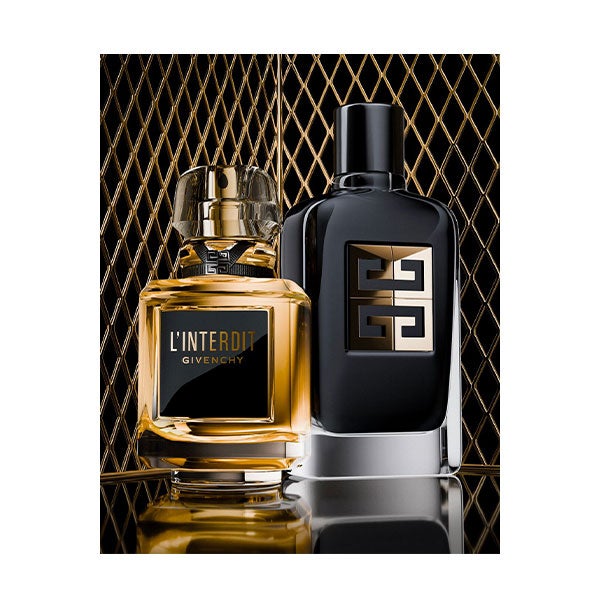 L'Interdit ousa reinventar seu icônico frasco jogando com o contraste entre o preto profundo, os sutis detalhes dourados e os reflexos de luz. Mais que um simples frasco, L'Interdit Parfum torna-se um verdadeiro objeto de desejo.