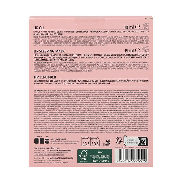 Consiga os lábios suaves e beijáveis com os quais sempre sonhou com o kit de cuidado labial Glitz & Glam da Sence. Este fabuloso conjunto inclui uma máscara nutritiva para os lábios, um esfoliante em forma de lábios e um óleo hidratante para os lábios. Mime seus lábios para que fiquem brilhantes e suaves durante toda a temporada!