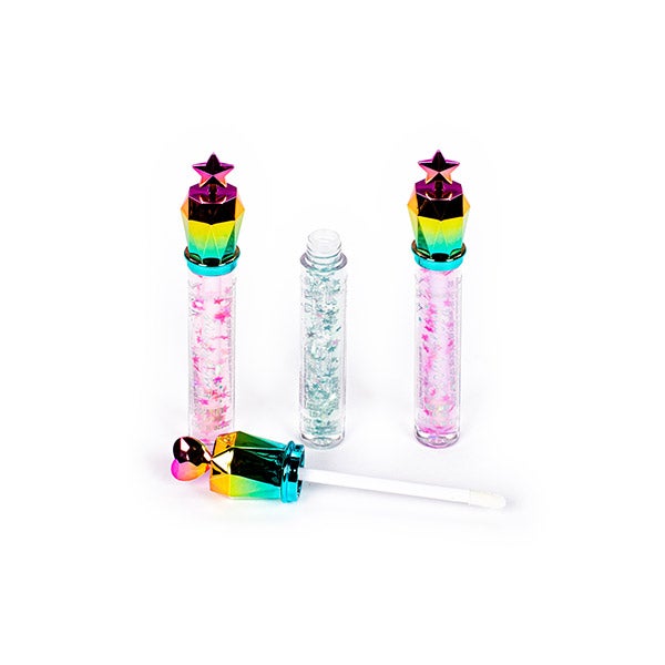 Inclui três óleos labiais com designs divertidos e diferentes cores.