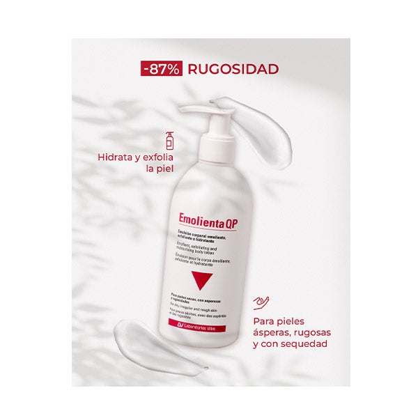 Emulsão corporal especificamente projetada para peles ásperas e rugosas com ressecamento. Graças à sua formulação à base de ácido salicílico e ácido glicólico, proporciona um efeito queratolítico-esfoliante que reduz as asperezas e alisa as rugosidades da pele, reduzindo os estados descamativos, ao mesmo tempo que consegue um intenso efeito hidratante. Especialmente formulada para aplicação em áreas extensas do corpo (particularmente braços, coxas e nádegas) devido à sua fluidez e rápida absorção sem deixar resíduos.