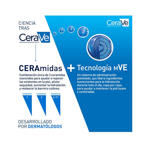 Esta loção leve e não oleosa, com 3 ceramidas essenciais e ácido hialurônico, proporciona hidratação que dura o dia todo após um único uso.