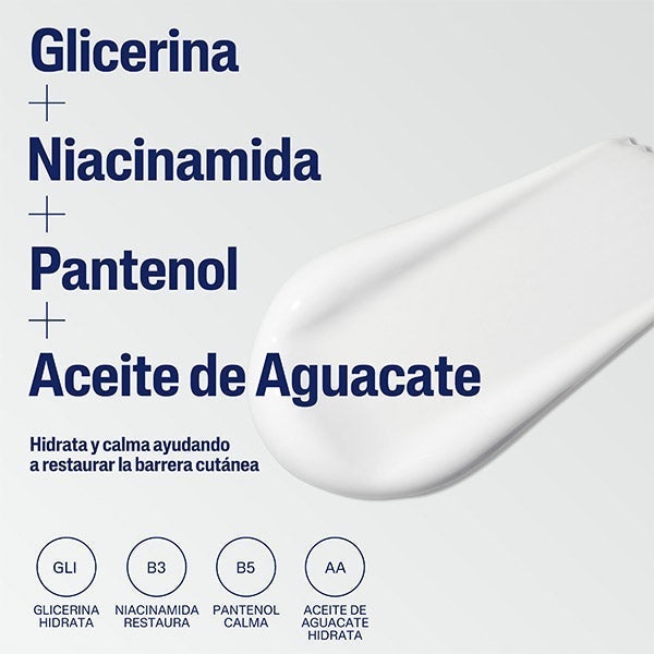 Loção leve com ingredientes hidratantes chave (Glicerina, Niacinamida Pantenol, Óleo de Abacate) que ajuda a manter a pele em boas condições.