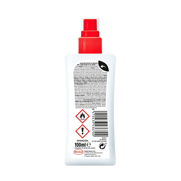 Icaridina (carboxilato de sec-butil 2-(hidroxietil)-1-piperidina) 15g/100g, Alcohol etílico 28,75g/100g, Fragancia 0,30g/100g (Citronellol, Limonene, Linalool, Geraniol, Citral, Coumarin), excipients hasta 100g.