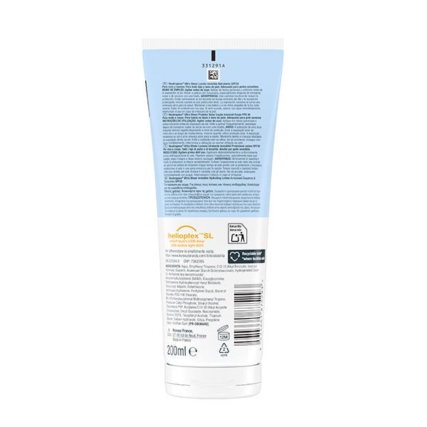 Neutrogena Ultra Sheer Loção Invisível Hidratante FPS30 (200 ml), protetor solar corporal, creme solar para o corpo resistente à água, protetor solar FPS30 ultraleve e hipoalergênico.