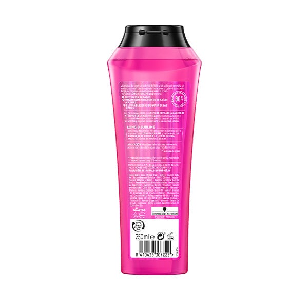 Long & Sublime: Este shampoo para cabelo longo está dedicado a reparar o cabelo longo e protegê-lo da quebra e favorece a melhoria e a manutenção da qualidade do cabelo longo.