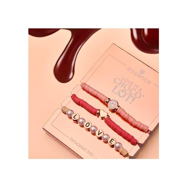 Adicione um toque de doçura ao seu estilo com o trio de pulseiras da Essence LOVE IT A CHOCO' LOT! 01 Chocolatey Vibes Only. O trio inclui três pulseiras flexíveis de tamanho único, cada uma adornada com lindos pingentes de ouro rosa: um coração, uma carinha feliz e um pingente "LOVE" com pérolas. Seu estilo divertido faz com que as pulseiras sejam perfeitas para usar diariamente ou como presente para alguém que você ama muito.