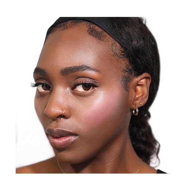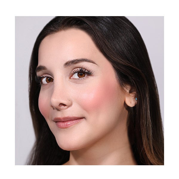 2. Para aplicar o blush, remova suavemente o excesso de produto do aplicador e aplique nas bochechas, começando com uma pequena quantidade.