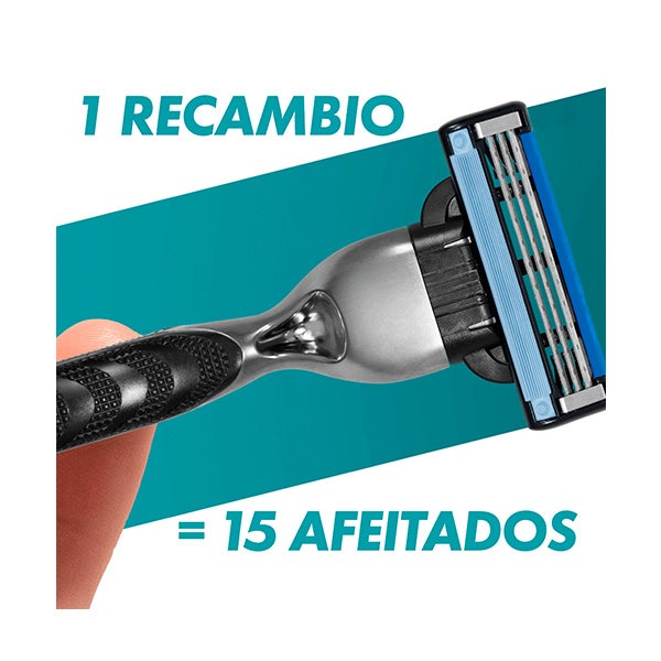 Máquina de Barbear de 3 lâminas. Projetada com aço de corte preciso para durar até 15 barbeamentos por recarga.