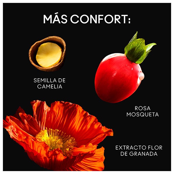 Acondiciona graças ao óleo de semente de camélia e rosa mosqueta