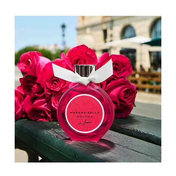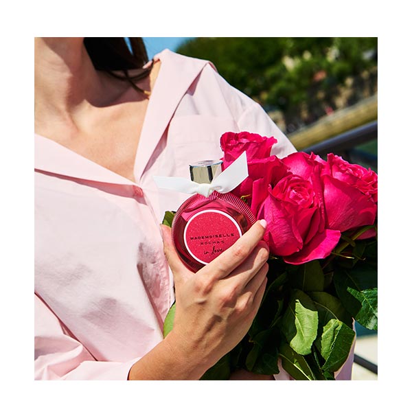 Mademoiselle Rochas está mais apaixonada do que nunca e não passa despercebida com esta nova eau de parfum para mulher. Uma fragrância floral ambarada que se abre com notas frutadas e inebriantes de maçã caramelizada. Em seu coração, revela a delicadeza do absoluto de rosa. Finalmente, o rastro torna-se mais sensual graças a uma infusão de baunilha. Chique, irresistível e parisiense em essência, esta eau de parfum decididamente feminina captura a liberdade de uma heroína apaixonada. Mademoiselle Rochas in Love, um amor à primeira vista em frasco!