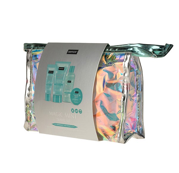 Abrace a beleza do inverno com o kit de viagem Sence. Dentro deste precioso nécessaire transparente, você encontrará um Gel de Banho, um Esfoliante de Banho, um Bálsamo Labial e um Creme de Dia, todos inspirados na beleza gelada da estação, que protegerão e realçarão sua pele. Irradie confiança durante suas escapadas na neve