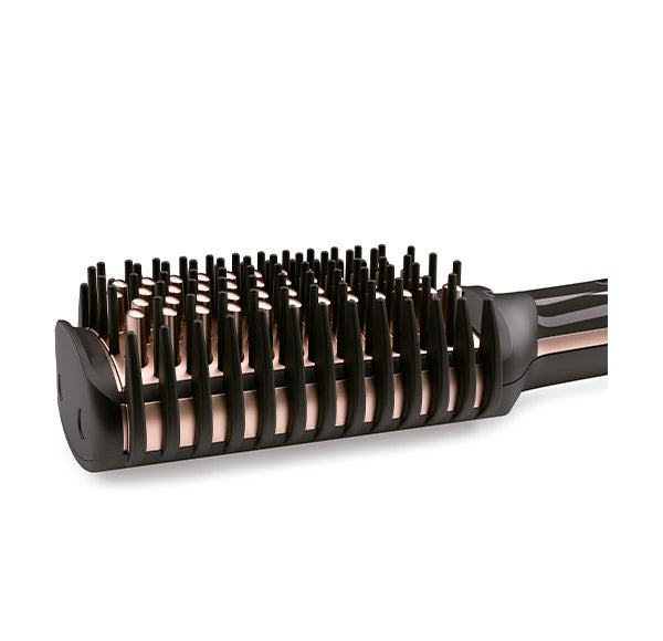 A combinação dos 3 lados aquecidos, as cerdas com revestimento de cerâmica e as cerdas de plástico garantem um excelente deslizamento e o máximo controle da mecha.