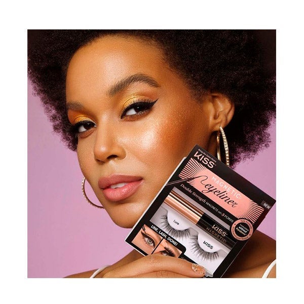 KISS Delineador de olhos magnético com cinco ímãs de dupla força em suas pestanas.