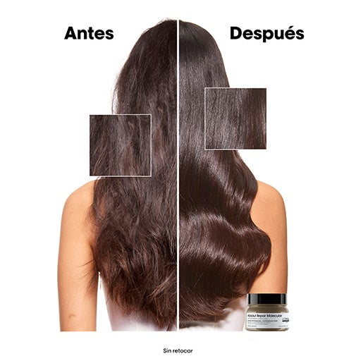 Esta máscara concentrada patenteada, formulada com Reparador de ligações + 5 Aminoácidos, repara 2 anos de danos* e preenche as camadas moleculares do cabelo**.
