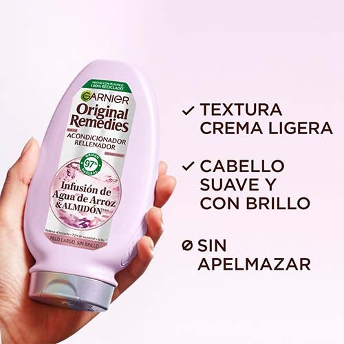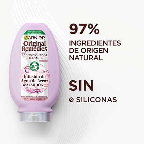 Garnier Original Remedies Condicionador Repositor com Infusão de Água de Arroz, ideal para cabelo comprido e sem brilho.