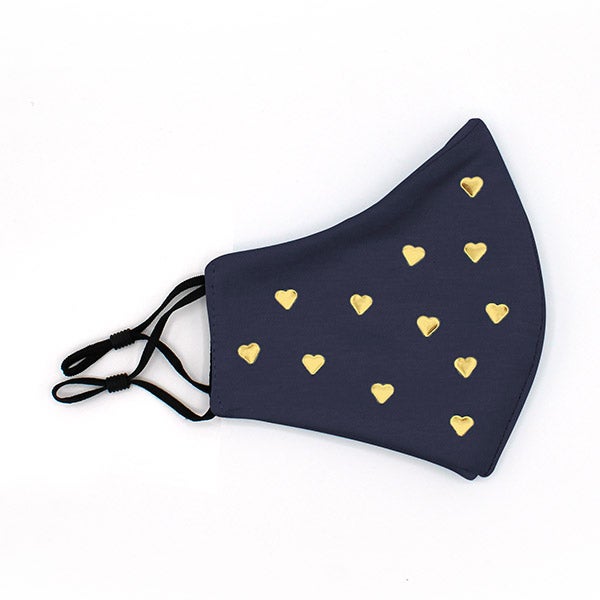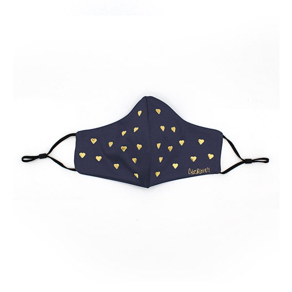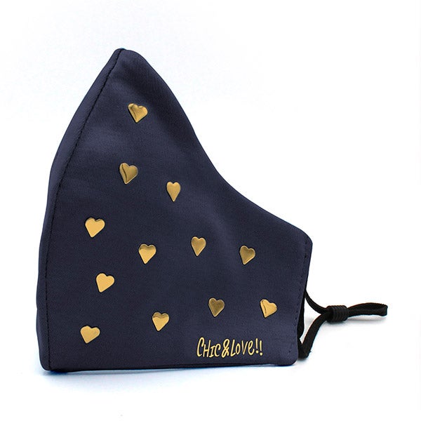 Máscara reutilizável azul marinho para crianças da marca Chic & Love com tachas metálicas em forma de corações.