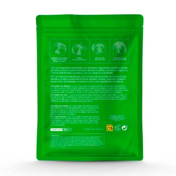 Formulada com extrato de abacate, esta máscara esfoliante remove suavemente impurezas enquanto hidrata. Os ácidos glicólico e láctico atuam nas áreas mais ásperas, deixando as mãos mais lisas e confortáveis.