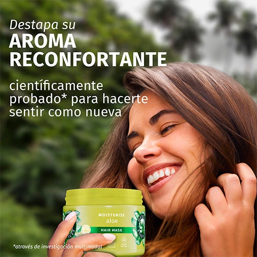 Herbal Essences Condicionador Fortificante com Aloe ajuda a revitalizar o cabelo seco e traz uma sensação de equilíbrio graças ao seu delicado aroma de jasmim. Ao misturar nutrientes de origem vegetal infundidos com aloe do México, obtemos uma fórmula vegana. Após o primeiro uso, você sentirá uma hidratação profunda e completa. Nossa Coleção de Aloe também ajuda a fortalecer, suavizar e combater o frizz para todos os cabelos cacheados ao mesmo tempo que acalma o couro cabeludo