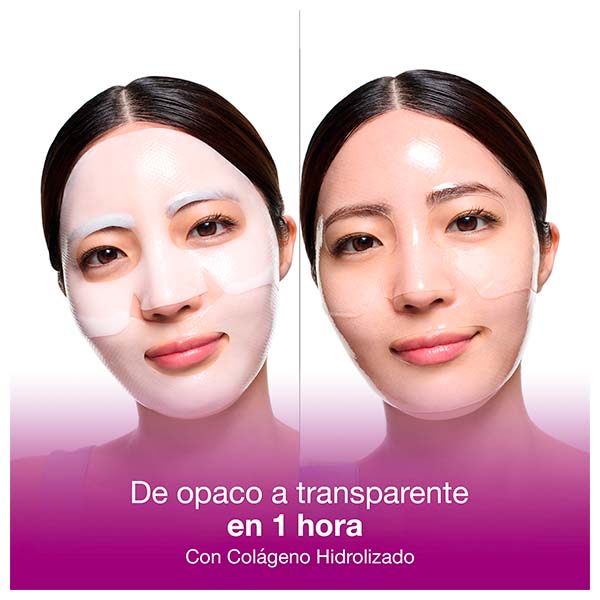 Máscara de hidrogel que se transforma de opaca a transparente uma vez absorvida na pele.