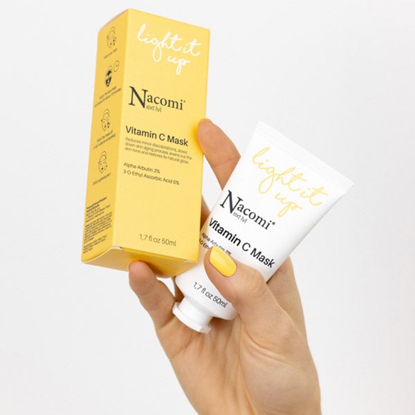 Máscara facial iluminadora com vitamina C.