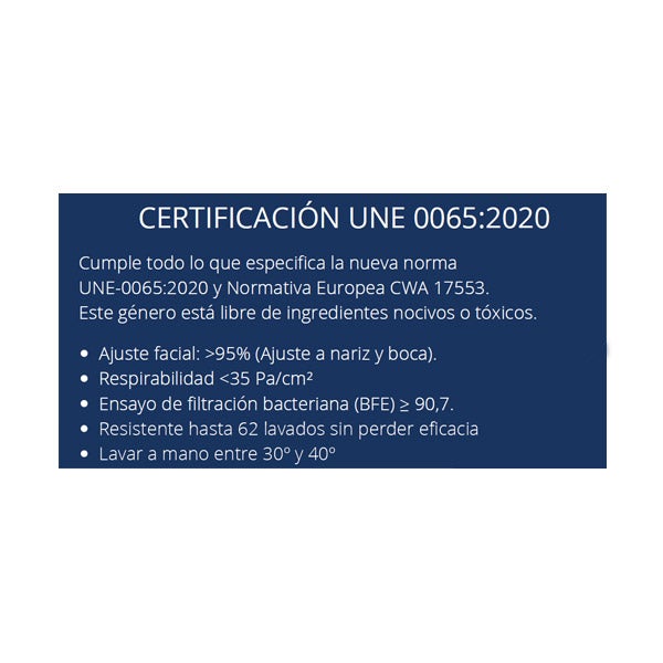 Cumpre tudo o que especifica a nova norma UNE-0065:2020 e Normativa Europeia CWA 17553.