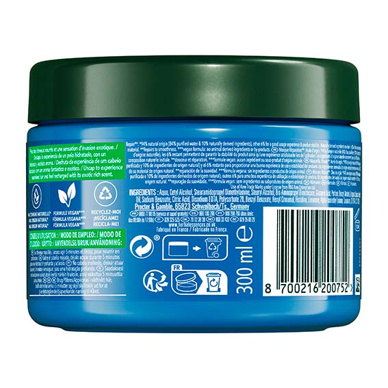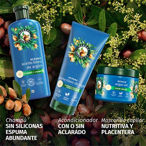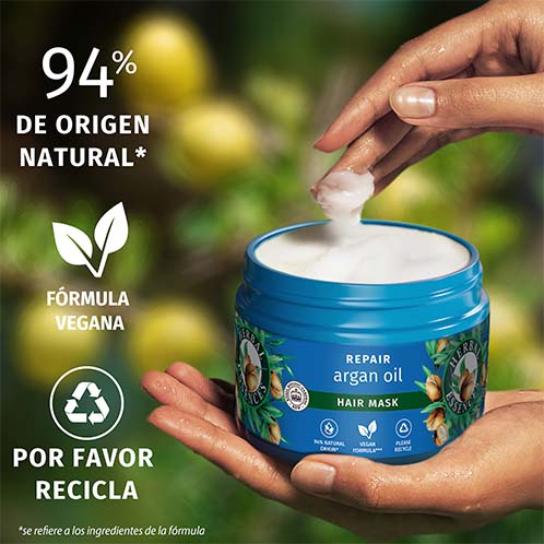 Herbal Essences Máscara Reparadora com Óleo de Argan ajuda a hidratar o cabelo danificado, deixando-o macio e brilhante. Vai trazer vitalidade e frescor graças aos seus ricos e exóticos aromas. Ao misturar nutrientes de origem vegetal com o precioso Óleo de Argan, obtemos uma fórmula vegana que hidrata profundamente o cabelo frágil. Repara de maneira natural desde o primeiro uso. Utilizamos uma cuidadosa seleção de ingredientes de origem natural, trazendo o poder da natureza até o seu banheiro