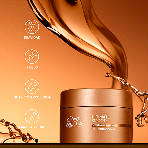 A máscara capilar Ultimate Smooth da Wella Professionals faz parte da rotina profissional de cuidado capilar, projetada para proporcionar nutrição e suavidade ao cabelo seco, crespo e sem brilho. A máscara Ultimate Smooth suaviza, nutre profundamente e proporciona brilho ao cabelo.