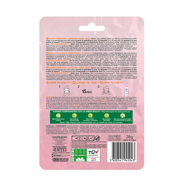 O tecido do qual são feitas se adapta ao seu rosto de maneira suave e acalma sua pele deixando-a hidratada graças ao seu conteúdo em camomila, ácido hialurônico e sérum hidratante.