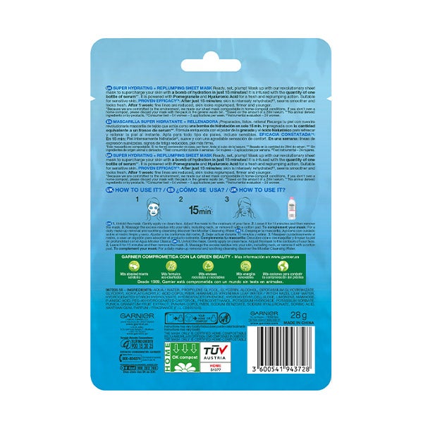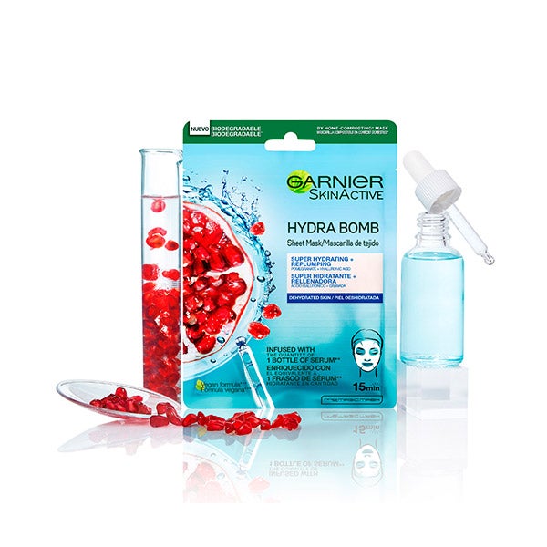 A máscara Hydra Boom Hidratante Energizante da Garnier é uma máscara de tecido hidratante.