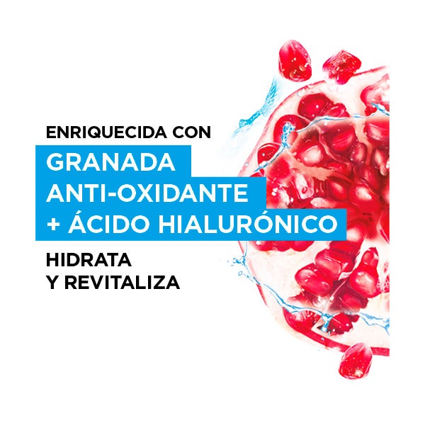 Revitalize seu rosto graças ao seu extrato de romã e ácido hialurônico.