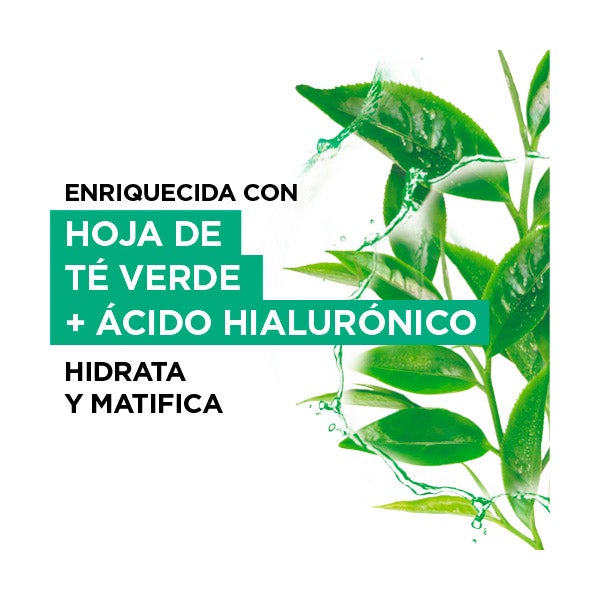 Consegue um resultado matificante graças à sua fórmula com extrato de chá verde e ácido hialurônico.