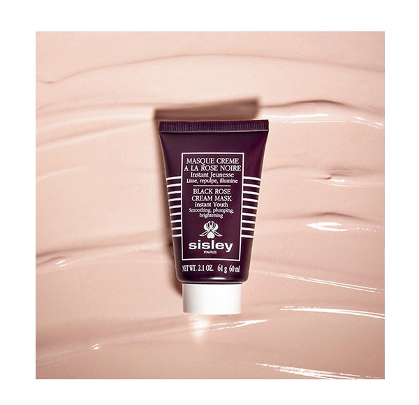 Aplica uma grande quantidade de Máscara Creme À Rosa Negra sobre o rosto e pescoço, sem aplicar na superfície do contorno dos olhos.