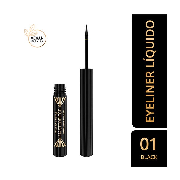 Novo delineador líquido Masterpiece com acabamento mate com aplicador muito fácil de usar e de ultra precisão.