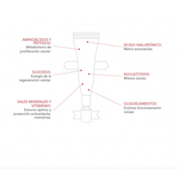 Estimula a regeneração celular fornecendo os nutrientes essenciais às células. Ajuda a estimular a capacidade autoregenerativa da pele.