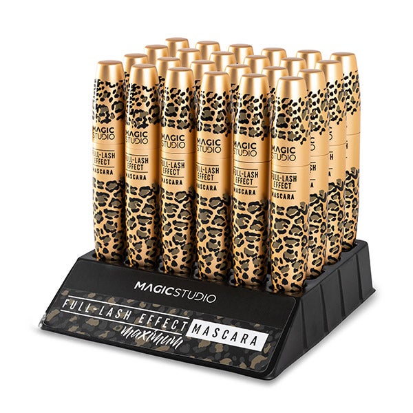 Deixe-se seduzir pela Máscara de cílios volumizadora da Magic Studio. Amplifica e define o olhar proporcionando um volume extremo "efeito cílios postiços" com um preto mais intenso. Sua fórmula preta com pigmentos saturados e seu pincel de fibras mais grossas cobrem os cílios da raiz às pontas, aumentando visivelmente a espessura dos cílios, sem empelotar, para um volume de longa duração e um preto mais profundo.