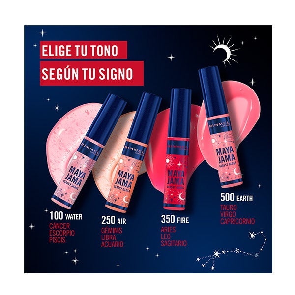 Você é apaixonado pelo fogo, pela terra, pelo ar livre ou pela água profunda? Combine seu visual de lábios com seu elemento do zodíaco com quatro dos tons Glassy Gloss mais queridos da Rimmel.
