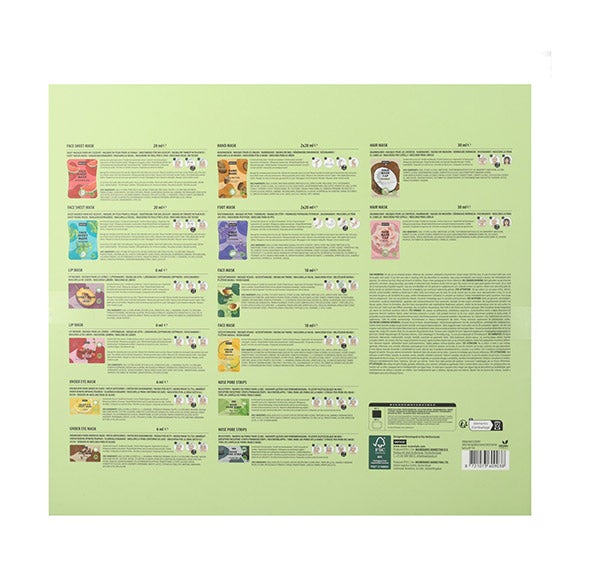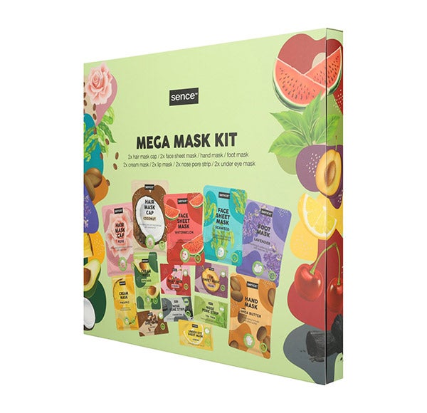 Desfrute do cuidado pessoal com o Mega Mask Kit de Sence Planet Love, que inclui catorze produtos inspirados na natureza para um dia de spa em casa. Da cabeça aos pés, desfrute da nutrição com duas máscaras capilares, duas máscaras faciais e uma máscara para mãos, outra para pés, outra para creme, outra para lábios, outra para poros nasais e outra para debaixo dos olhos. Comece sua jornada de cuidado pessoal com um toque natural.